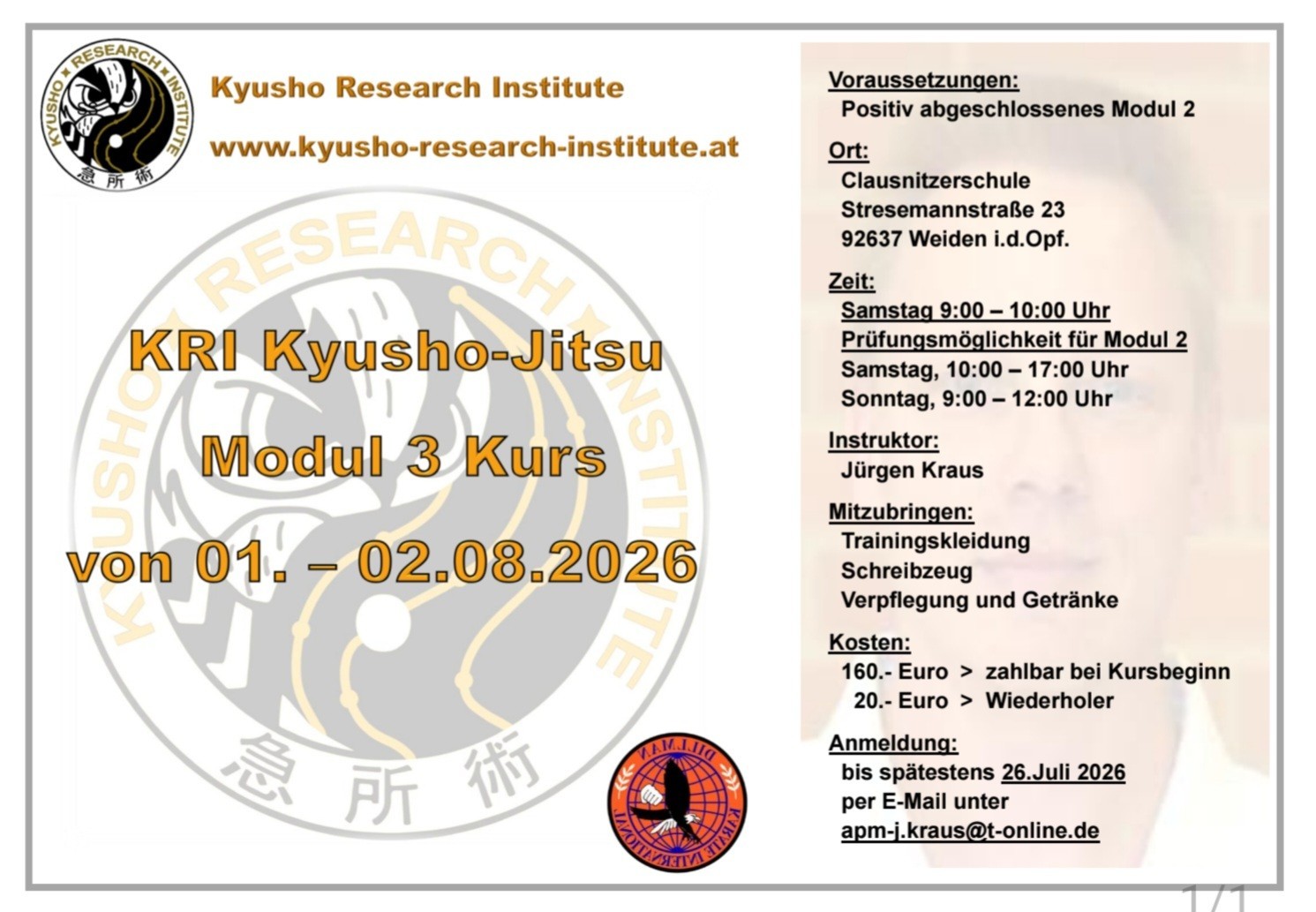 Nachfolgend findest du die nächsten Möglichkeiten Kyusho-jitsu kennenzulernen oder deine Kenntnisse weiter zu vertiefen.